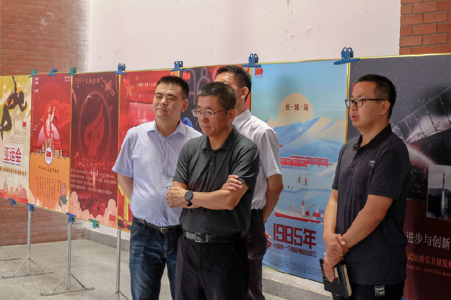 见证中国共产党诞生的南湖红船,标志中国共产党走向成熟的遵义会议,提振全国军民抗战胜利信心的百团大战;展现抗日英雄人物视死如归的群像,记录开国大典历史时刻的日历,反映新中国建设成就的实物;描绘国家发展战略的地图,定格恢复中华人民共和国在联合国一切合法权利瞬间的照片,寓意1977年恢复高考改变几代人命运的信封;显现1998年抗洪抢险中万众一心、众志成城的场面,再现北京奥运会盛况的场景,展现全面深化改革进程的说明;体现全方位外交的展板,反映高质量发展的成果,呈现开启新征程的实景……展览长廊犹如时光隧道,一幅幅展板、一张张图片、一份份手绘、一段段历史,韩金玉等领导同志都一一认真观看,聆听讲解,不时询问有关情况,并勉励同学们立足专业抓好党史学习教育。