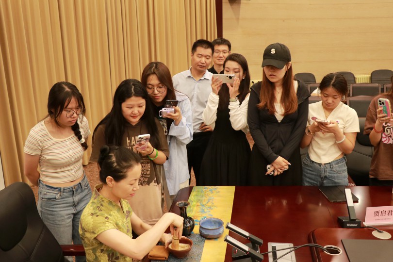 最后,王晓丽现场演示“宋风雅韵”点茶表演,并让在场师生体验了点茶技巧,亲身感受传统茶文化的独特魅力,让大家感到十分新奇,收获颇丰。