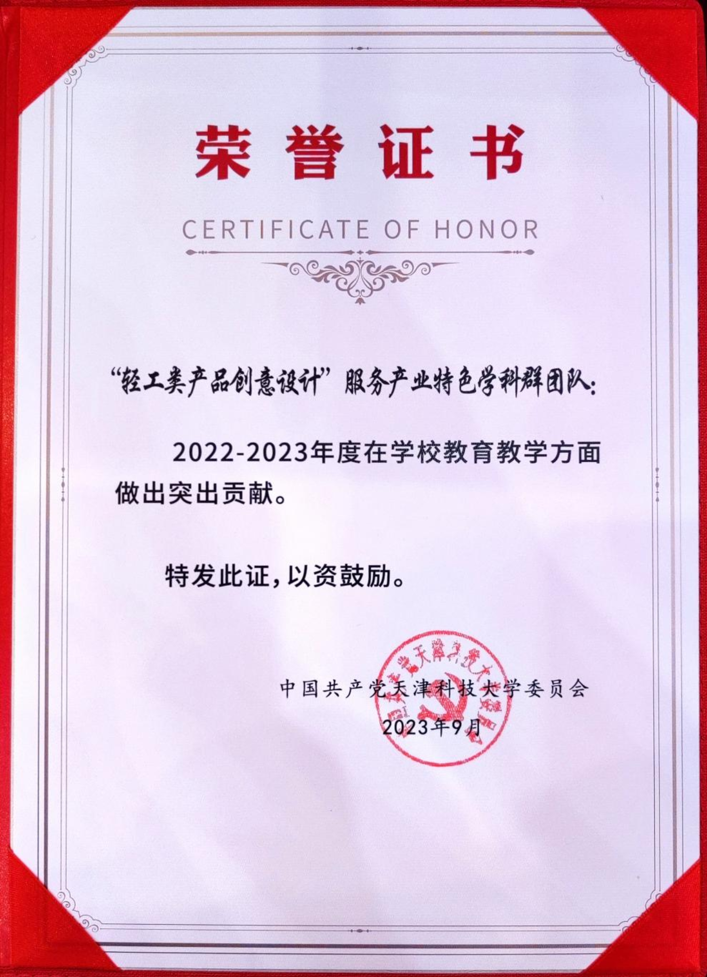 2023年,公司“轻工类产品创意设计”学科群获批天津市高校服务产业特色学科群。
