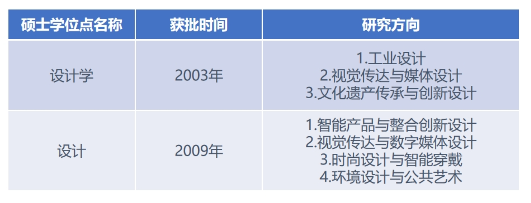 公司是国内创建较早、规模较大、专业设置较齐全,具有一定影响力的设计公司。现有2个硕士学位授权点,其中设计学(学术型)获批于2003年,为一级学科、天津市重点培育学科,现有工业设计、视觉传达与媒体设计、文化遗产传承与创新设计3个二级学科;设计(专业型)获批于2009年,现有智能产品与整合创新设计、视觉传达与数字媒体设计、时尚设计与智能穿戴、环境设计与公共艺术4个专业领域。